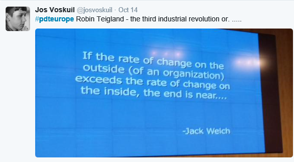 All very positive trends for the future, however, a big threat to the currently established companies. Robin named it the Third Revolution which is in line with what we are discussing in our PLM world, although some of us call it even the Fourth Revolution (Industry 4.0).