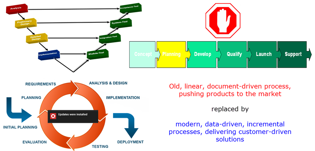 When your company wants to implement PLM today, it is important to realize all businesses are transitioning from old linear processes, pushing products to the market towards incremental customer-oriented processes. With a change from a document-driven approach towards a data-driven approach, implementing PLM requires a new approach:
