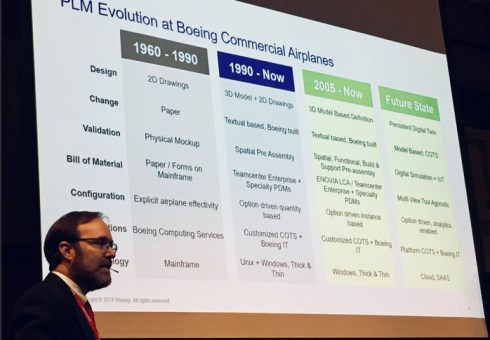 Kenny Swope from Boeing talked us through the potential Boeing journey towards a Model-Based Enterprise. Boeing has always been challenging themselves and their partners to deliver environments close to what is possible. Look at the Boeing journey and you can see that already in 2005 they were aiming for an approach that most of current manufacturing enterprises cannot meet. And now they are planning their future state.