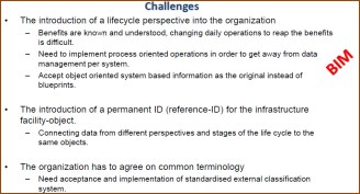 The first presentation from Väino Tarandi, professor in IT in Construction at KTH Sweden presented his findings related to BIM and GIS in the context of the lifecycle, a test bed where PLCS meets IFC. Interesting as I have been involved in BIM Level 3 discussions in the UK, which was already an operational challenge for stakeholders in the construction industry now extended with the concept of the lifecycle. So far these projects are at the academic level, and I am still waiting for companies to push and discover the full benefits of an integrated approach.