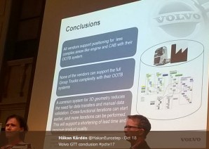 Next Jeanette Nilsson and Daniel Adin from Volvo Group Truck shared their findings related to an evaluation project for more than one year where they evaluated the major PLM Vendors (Dassault Systemes / PTC / Siemens) on their Out-of-the-box capabilities related to 3D product documentation and manufacturing.