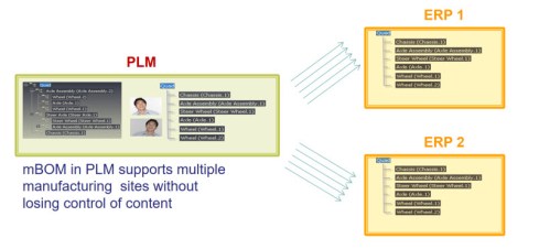 - In case a company has multiple manufacturing plants or is aiming to outsource manufacturing, the PLM-system is the only central place where all product knowledge can reside and pushed to the local ERPs when needed for potential localization. Localization means for me, using parts that are sourced in the region, still based on the part specification coming from the EBOM.