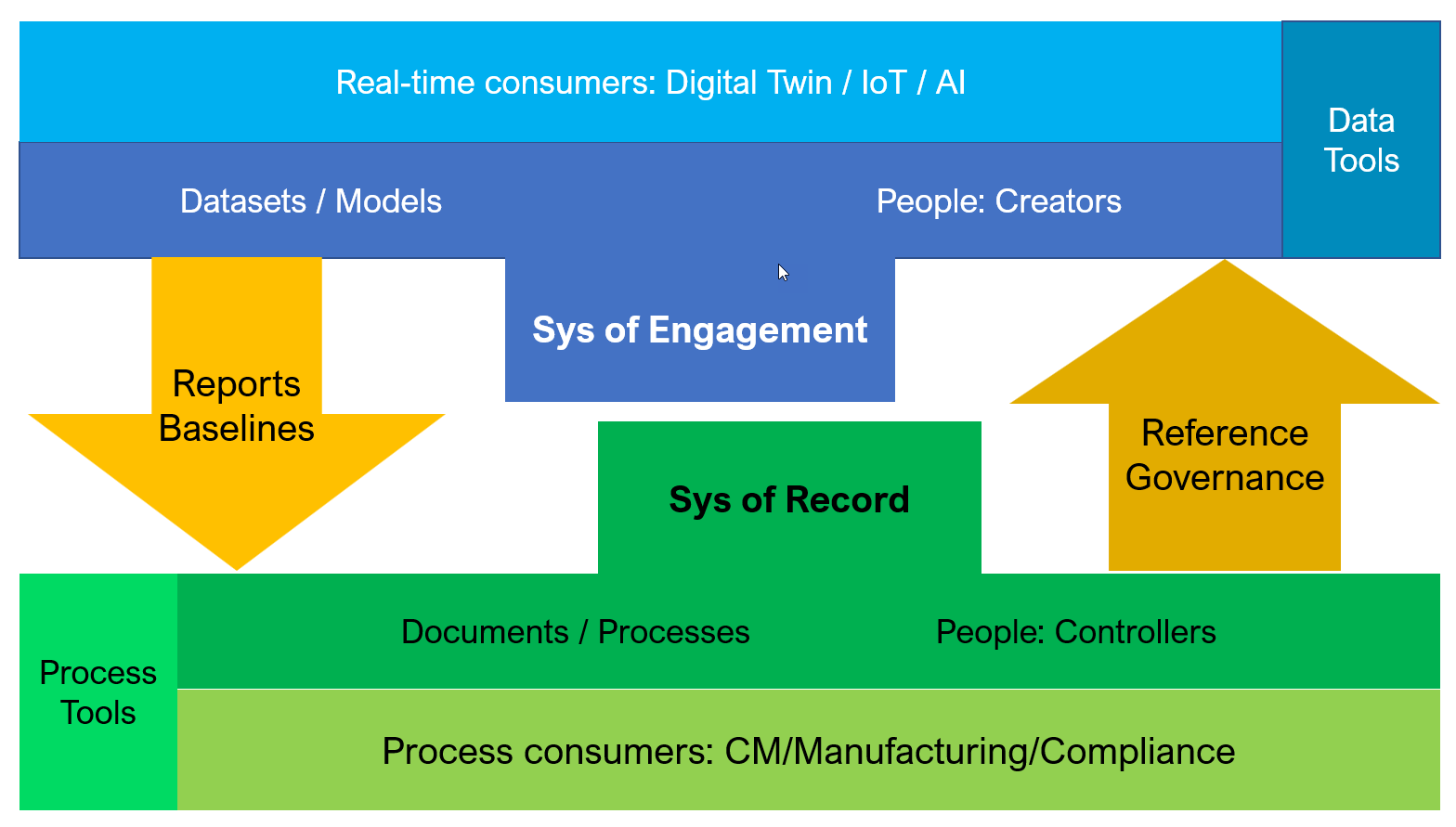 Below I share my first attempt to combine the people, process and tools trinity with the concepts of document and data, system(s) of record and system(s) of engagement. Trying to build the story. Look if you recognize the aspects of the discussion above, and feel free to develop enhancements.