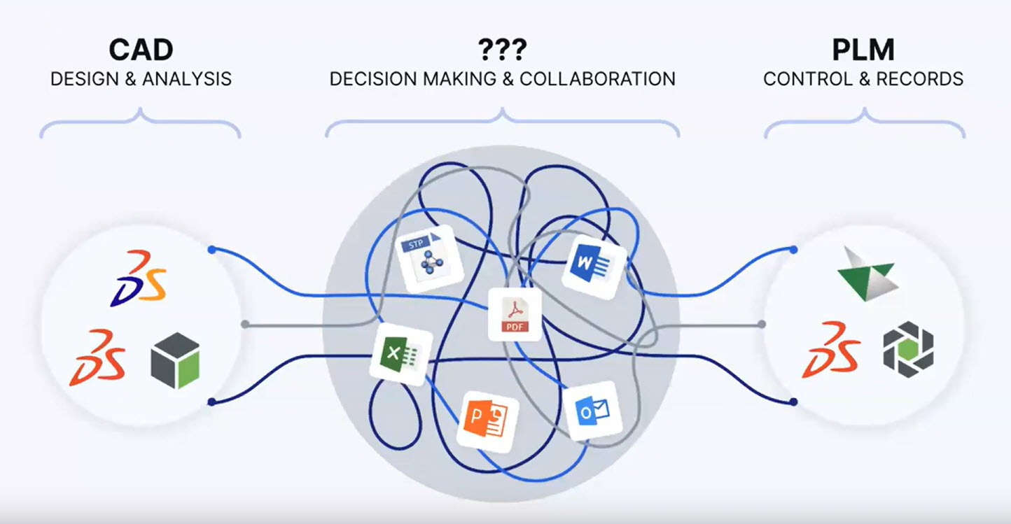 PLM provides a strong foundation where product data is controlled (and therefore reliable). But PLM has a rigid architecture that’s optimized for data (and for human-to-data interaction). To deal with increased complexity in product design, engineers now need a system that’s built for human-to-human interaction complimentary to PLM.