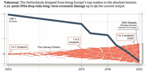 The conclusion: We are in a free fall in the Netherlands (image below) and likely in other countries too, because we are reading less, writing less, and consequently thinking less deeply.