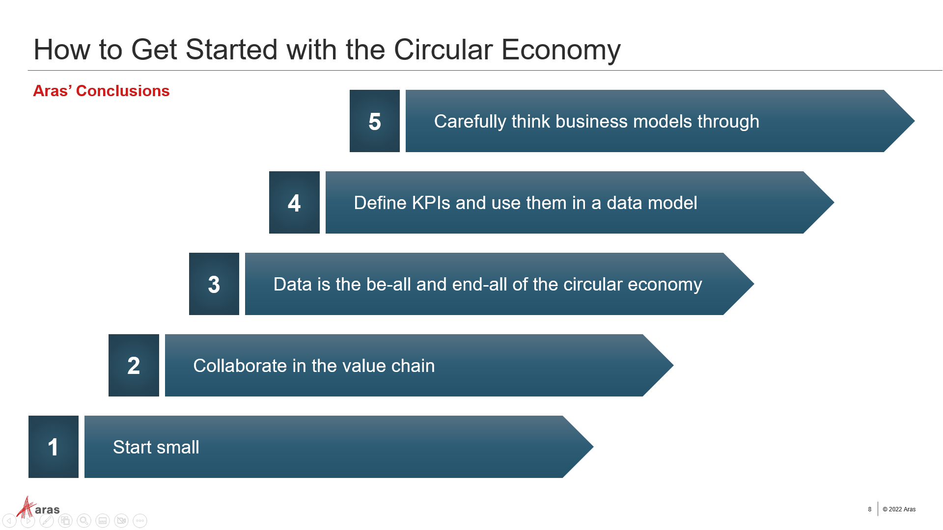 As Matthias mentioned, nobody can do it on their own. According to Aras’ studies, 70% see Sustainability as an important area to improve themselves; nobody can do it on his own. Partnerships are crucial, as well as digital connections between the stakeholders. It is a plea for systems thinking in a connected manner, connecting to existing material libraries.