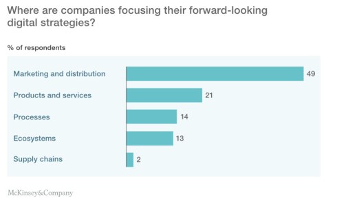 Also, it is interesting to read a 2017 McKinsey post: The case for digital reinvention, where you will get the confirmation that a lot of digital initiatives did not bring more top-line revenue and most of the times lead to extra costs. Interesting to see where companies focus their digital strategies – picture below: