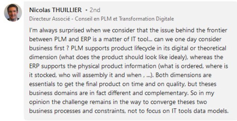 They do not mention PLM; they have a business focus, and it is important to mention a company can work in different modes. This is an organizational choice, but don’t let people work in two modes,