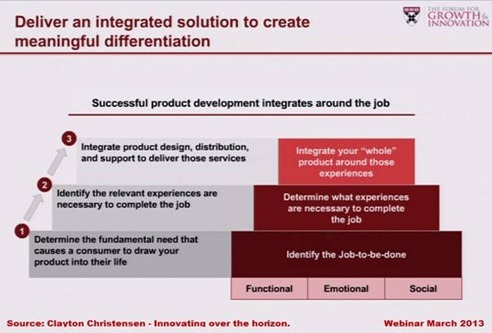 And here I come back to the webinar’s conclusion. If you want to secure your future as a company, you need to focus on the job to be done. And even better, focus on the experience to do the job and the best integration of these experiences in a total framework. See the slide below: