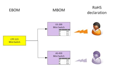 An employee had to manually add the substances into a table and ensure the threshold values were not reached. But, of course, there was already a selection of preferred manufacturer parts during the engineering phase. Therefore RoHS compliance was almost guaranteed when releasing the EBOM.