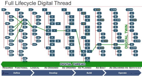 In a modern way, the digital thread results from building such an infrastructure with related artifacts. The digital thread is somehow a slow-moving environment, connecting the various as-xxx structures (As-Designed, As-Planned, As-Manufactured, etc.). Looking at the different PLM vendor images, Aras example above, I consider the digital thread a fancy name for traceability.