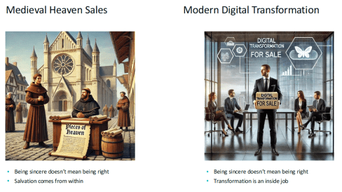 * Step 3 is building a compelling story to implement the vision. Implementing new ways of working based on new technical capabilities requires also organizational change. If your organization keeps working similarly, you might gain some percentage of efficiency improvements.