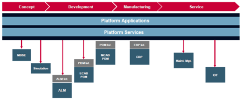 In his current eco-system, ERP (read SAP) is playing a significant role as an execution platform, complemented by PDM or ECTR capabilities. Few of his customers go for the broad PLM systems, and therefore, he stresses the importance of the so-called Extended Digital Thread.