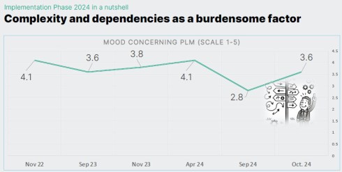 Andreas shared some best practices illustrating the focus on the transition and human aspects. They have implemented a regular survey to measure the PLM mood in the company. And when the mood went radical down on Sept 24, from 4.1 to 2.8 on a scale of 1 to 5, it was time to act.