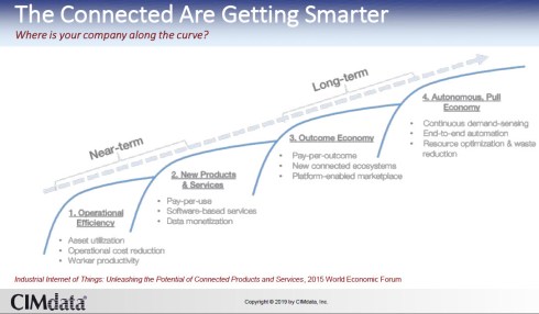 Peter Bilello from CIMdata shared his observations and guidance related to the current ongoing digital business revolution that is taking place thanks to internet and IoT technologies. It will fundamentally transform how people will work and interact between themselves and with machines. Survival in business will depend on how companies create Smart and Connected Ecosystems. Peter showed a slide from the 2015 World Economic Forum (below) which is still relevant: