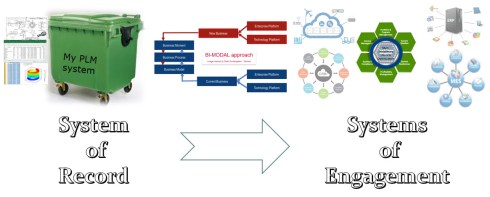 Current modes could be an existing PLM backbone, focusing on capturing engineering data, the classical PLM system serving as a system of record. And a second, new growing PLM-related infrastructure which will be a digital, most likely federated, platform where modern customer-centric PLM processes will run. As the digital platform will provide real-time interaction it might be considered as a system of engagement, complementary to the system of record.