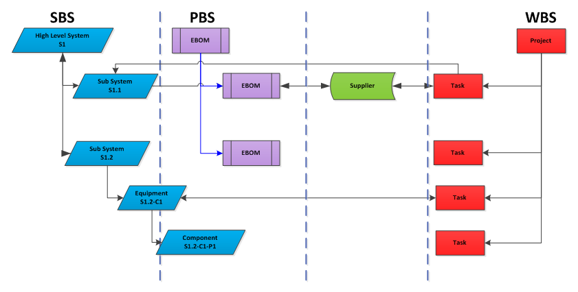 The benefit of having the system breakdown structure is that it manages the relations between all systems and subsystems. Potentially when a subsystem will be delivered by a supplier this environment supports the relationship to the supplier and the tracking of the delivery related to the full system / project.