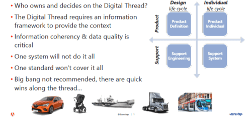 In his current eco-system, ERP (read SAP) is playing a significant role as an execution platform, complemented by PDM or ECTR capabilities. Few of his customers go for the broad PLM systems, and therefore, he stresses the importance of the so-called Extended Digital Thread.