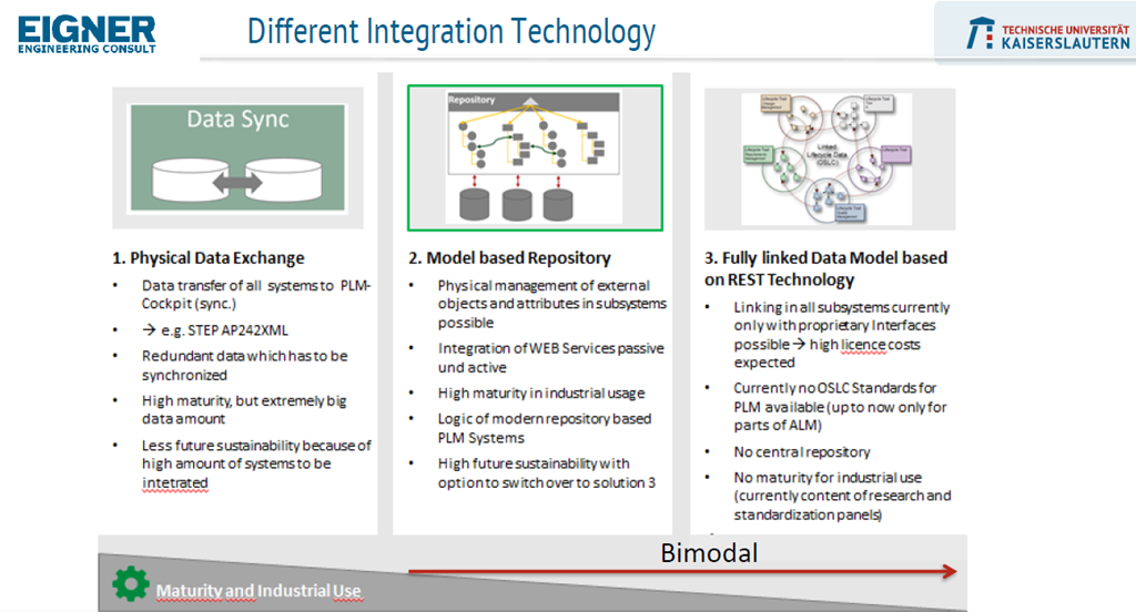 Current modes could be an existing PLM backbone, focusing on capturing engineering data, the classical PLM system serving as a system of record. And a second, new growing PLM-related infrastructure which will be a digital, most likely federated, platform where modern customer-centric PLM processes will run. As the digital platform will provide real-time interaction it might be considered as a system of engagement, complementary to the system of record.