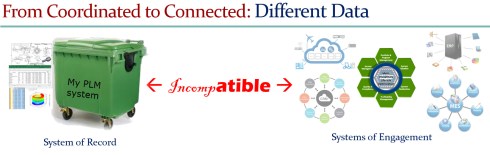 People cannot work in two modes, but organizations can. As you can see from the McKinsey chart, the digital teams will get bigger and more important for the core business over time. In parallel, when their data usage grows, more and more data integration will occur between the two operation modes. Therefore, the old PLM infrastructure can remain a System of Record and serve as a support backbone for the new systems of engagement.