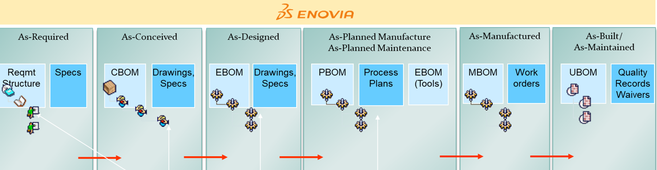 I believe we are almost at the end of learning from the past. We have seen how, from an initial serial CAD-driven approach with PDM, we evolved to PLM-managed structures, the EBOM and the MBOM. Or to illustrate this statement, look at the image below, where I use a Tech-Clarity image from Jim Brown.