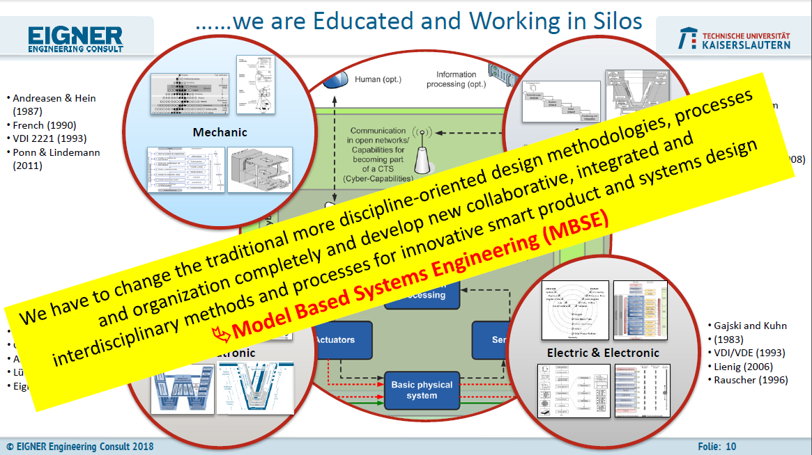 Professor Martin Eigner keynote presentation was about the concepts how new products and markets need a Systems of Systems approach combined with Model-Based Systems Engineering (MBSE) and Product Line Engineering (PLE) where the PLM system can be the backbone to support the MBSE artifacts in context. All these concepts require new ways of working as stated below: