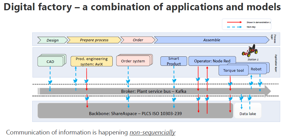 In my post, Coordinated or Connected, related to a model-based enterprise I call this approach a coordinated approach, which is a current best practice, not an approach for the future. There we want a model-based enterprise instead of a BOM-centric approach to ensure a digital thread. See also Don Farr’s diamond. When I asked Mikko which data standard(s) ABB will use to implement their enterprise data model it became clear there was no concept yet in place. Perhaps an excellent opportunity to look at PLCS for the product related schema.