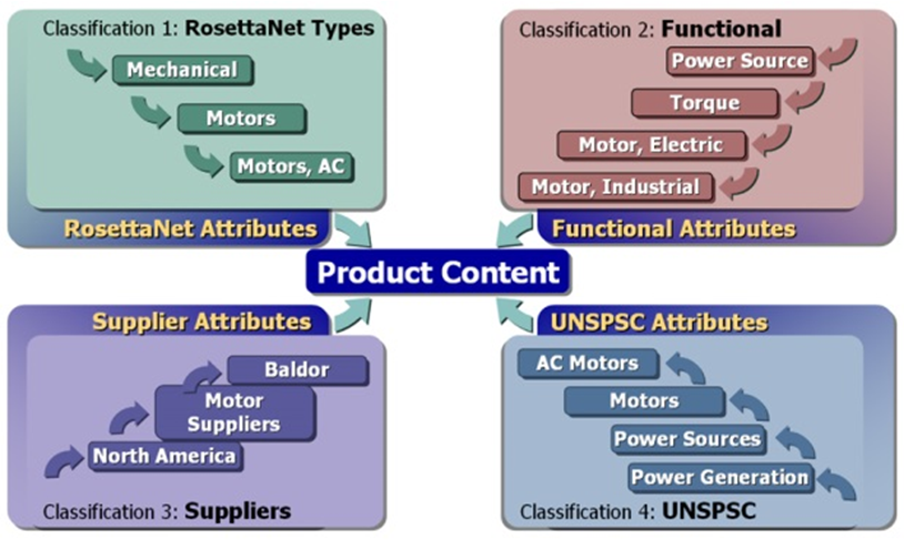 Other classification standards like ISO13399, RosettaNET, ISO15926 and IFC exist to support collaboration and/or the supply chain. When you want to exchange data with other disciplines or partners. The advantage of a standard definition (with attributes) is that you can exchange data with less human processing (saving labor costs and time – the benefit of a digital enterprise).