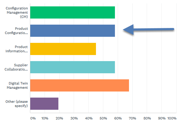 As you can see, most of you are curious about Digital Twin management 68 % (it is hype). Second best are Configuration Management, Product Configuration Management and Supplier Collaboration Management, all with 58% of the votes. Click on the image to see the details. Note: you could vote for more than one topic.