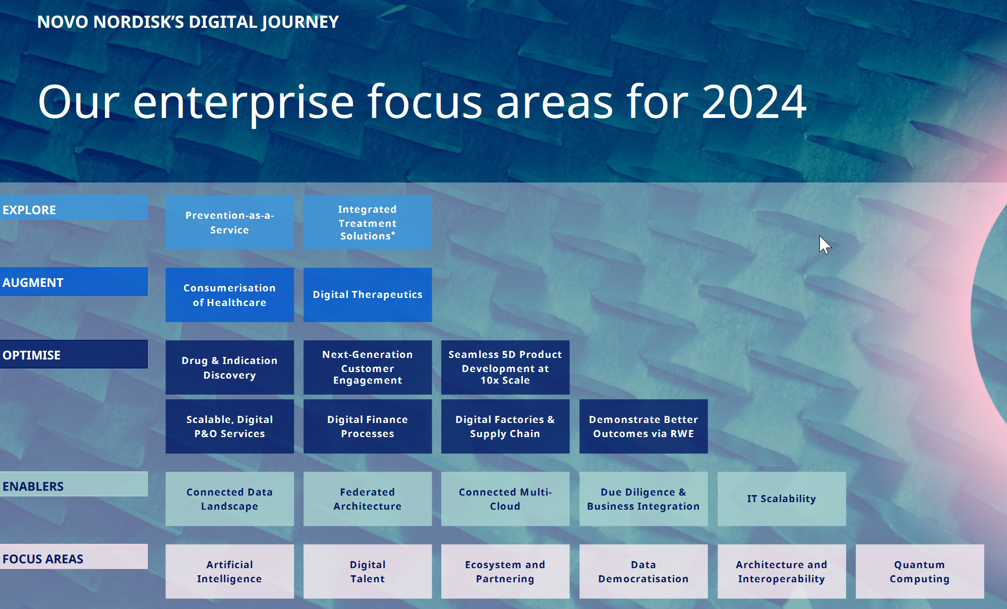 One of the focus areas for Novo Nordisk in 2024 is also Artificial Intelligence, as you can see from the image to the left (click on it for the details).