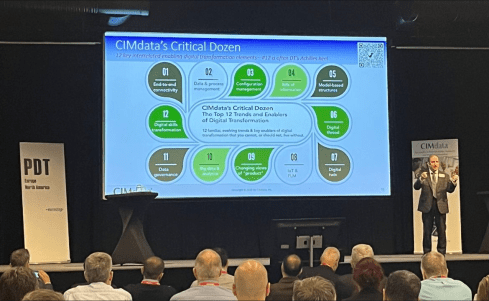 Day 1 started traditionally with the keynote from Peter Bilello, CIMdata’s president and CEO. In previous conferences, Peter has recently focused on explaining the CIMdata’s critical dozen (image below). If you are unfamiliar with them, there is a webinar on November 10 where you can learn more about them.