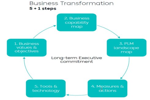 I wrote two long posts about these experiences. The first one,” PLM – business first,” zooms in on the changing mindset that PLM is not an engineering system anymore but part of a digital infrastructure that supports companies in achieving their business goals. The image below from Dr. Yousef Hooshmand is one of my favorites in this context. The 5 + 1 steps, where the extra step is crucial: Long Executive Commitment.