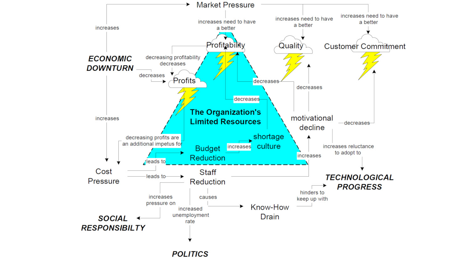 The image above from Chris’s post could be a starting point for a Benefits-Dependent Network diagram, expanded with Objectives, Business Changes and Benefits to fight this vicious downturn.