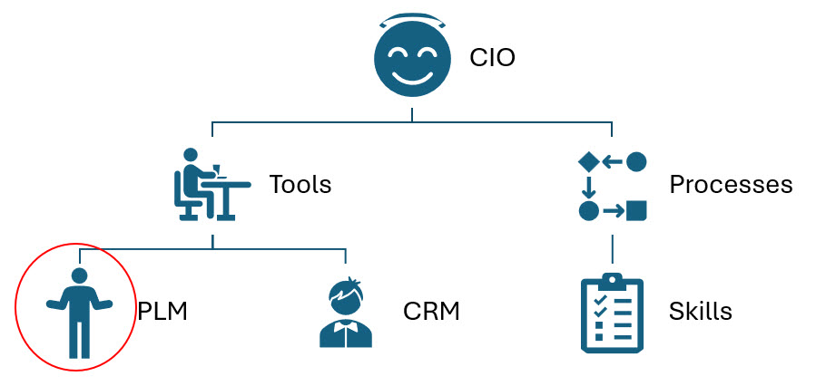 Here, we meet the internal PLM team, which is motivated by the technology and wants to spread the message to the organization. Often, with no or limited success, as the value and the context they are considering are not understood or felt as urgent.